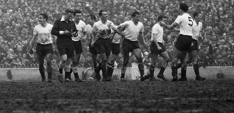 Above - Legendary double skipper Danny Blanchflower is congratulated after opening the scoring for us in our quarter-final success in N17 in March 1962.