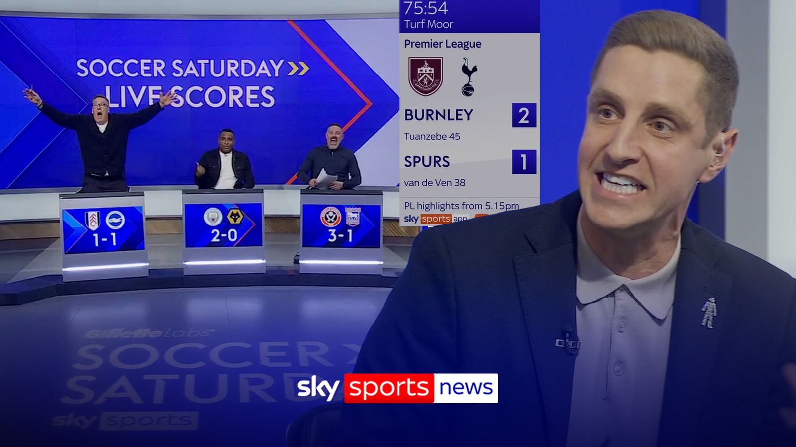 Submitted by daniel on Sat, 24/01/2026 - 17:11 Picture Remote Image Please use Chrome browser for a more accessible video player Link Burnley 2-2 Tottenham Hotspur | Paul Merson and Kris Boyd told off for celebrat… Source Sky Sports