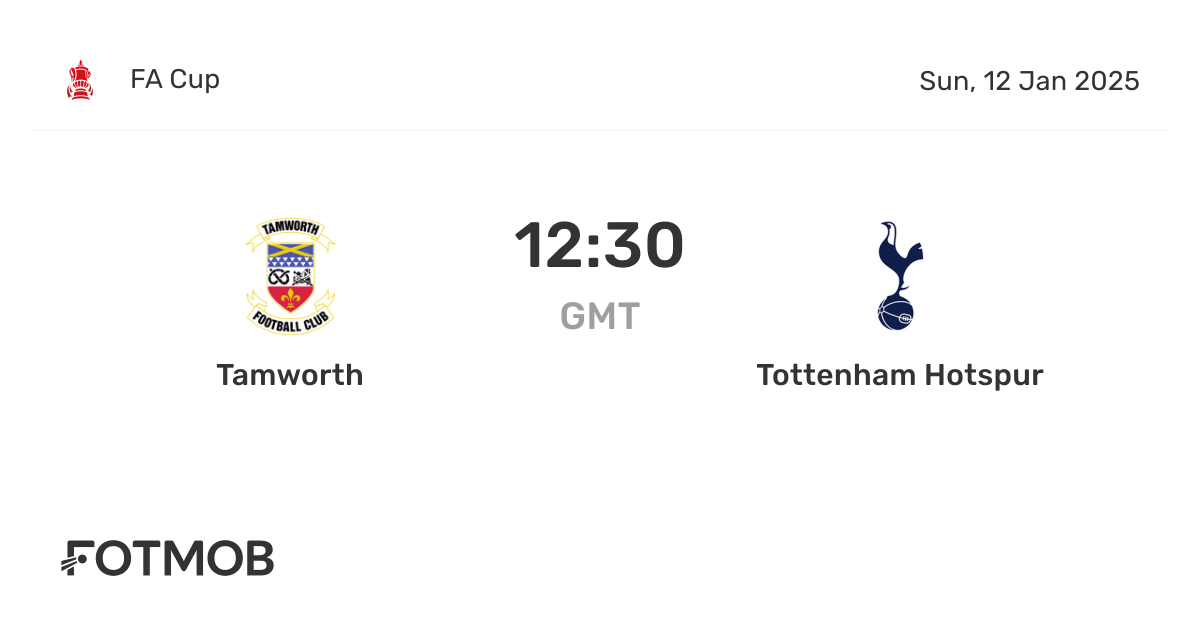 Tamworth is playing home against Tottenham Hotspur at The Lamb Ground on Sun, Jan 12, 2025, 12:30 UTC. This is Round 3 of the FA Cup.