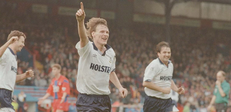 Above - Celebrations for Teddy Sheringham after netting his second in our 3-1 triumph at Selhurst Park in January 1993