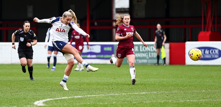 Two strikes of pure quality completed a turnaround win against West Ham on 1 February - and both are on the shortlist for GOTM. First up, Matilda cut inside from the right and powered a drive into the top corner from 22 yards. Soon after, a sweet strike from Olivia, who ran onto a wayward pass and drilled into the corner, first-time, from 25 yards.